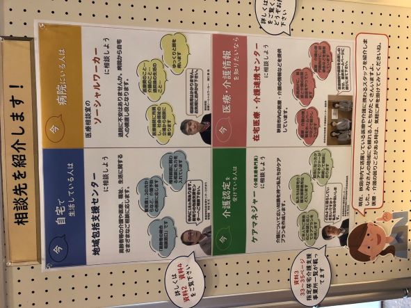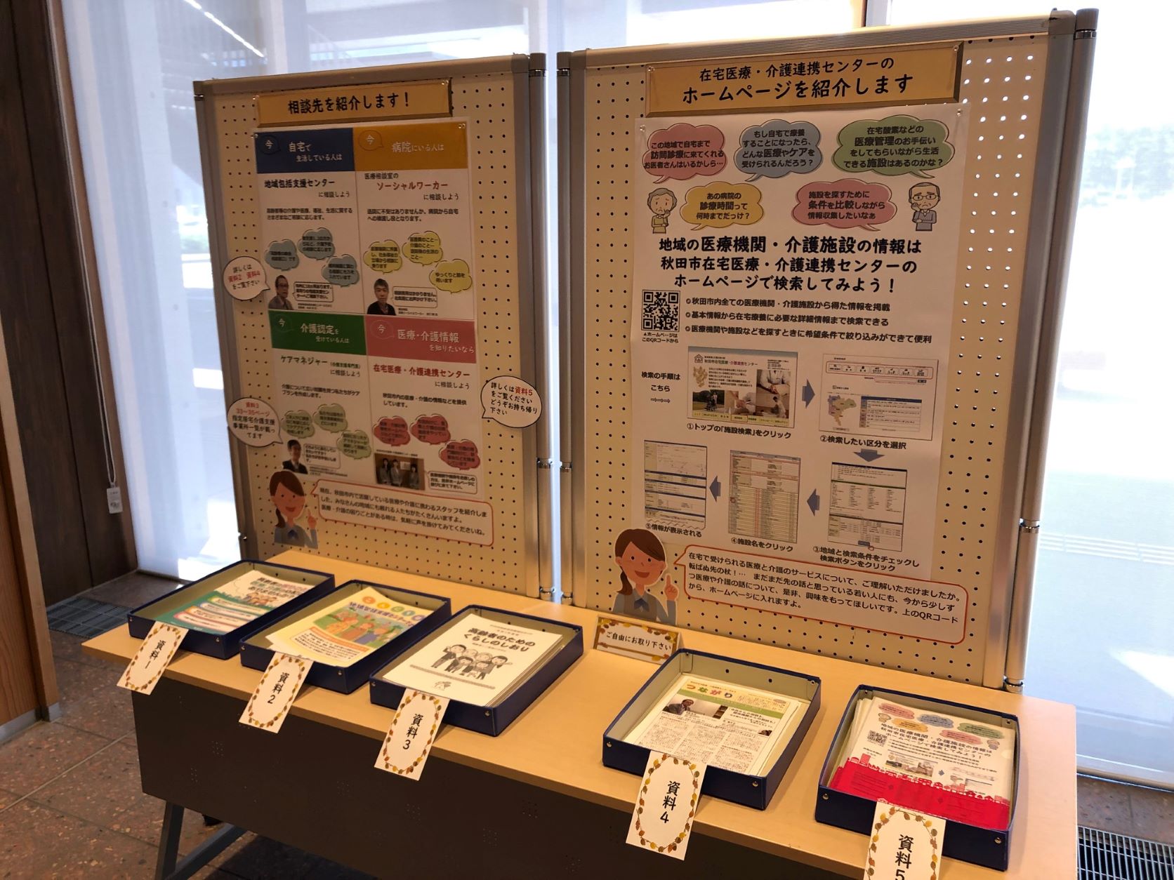 今回の展示にあたり、秋田市在宅医療・介護連携センター様より相談先の紹介として協力の依頼をいただき、パネルに展示してもらいました。