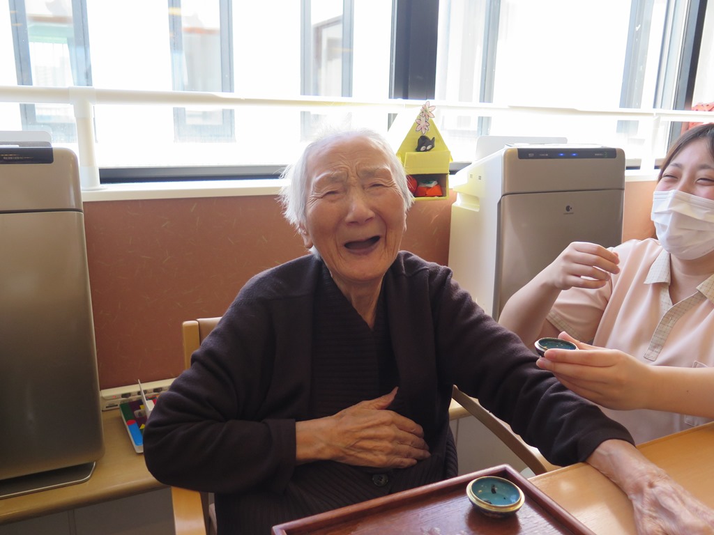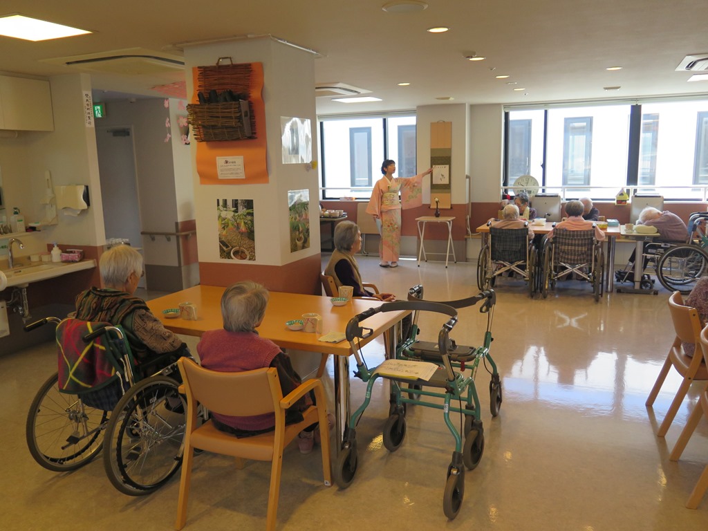 特養ほどのでは室内でも春を感じて頂けるよう趣向を凝らし、お茶会を催しました。