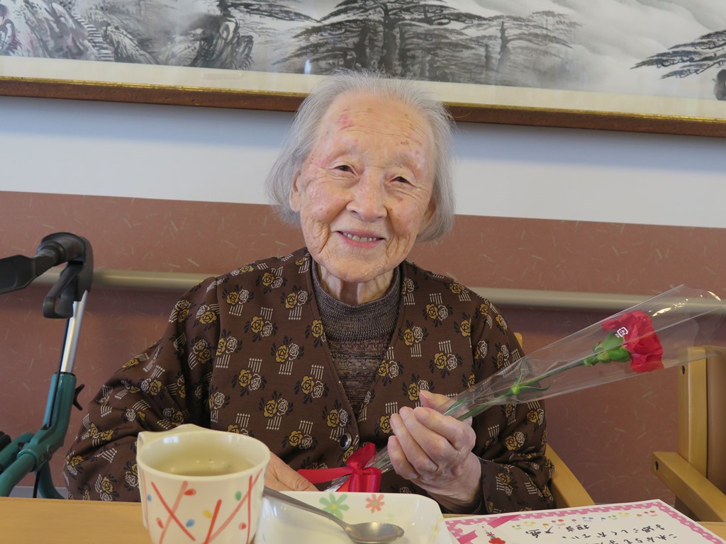 女性のご利用者一人ひとりに担当職員からのメッセージカードとカーネーションのプレゼントをさせて頂きました。